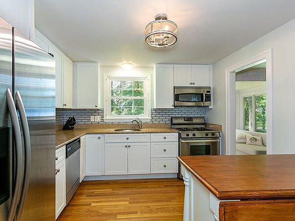 Charming raised ranch near Dover line in prime move-in-condition sitting on nearly half an acre corner lot with beautifully manicured lawn. Remodeled kitchen with granite countertops, stainless steel appliances and wood cabinets that go all the way to the ceiling, and both bathrooms have recently been renovated. Energy efficient home with all new Pella windows and NEST-controlled central A/C and gas forced hot air. Awesome features of all three bedrooms: gleaming hardwood floors, recessed lighting and built-in closet organizers. 3-season porch with windows on all three sides flows from the dining room which has timeless wainscoting and opens into the bright and spacious living room complete with a large picture window and brick fireplace. An abundance of storage space, between the attic, oversized garage, backyard shed and massive room under the porch with full ceiling height. The backyard is truly one you must see - the cobblestone patio and in-ground sprinkler keep it looking perfect