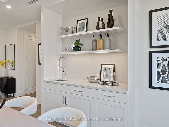 This incredibly spacious and bright three-bedroom residence is in the brand-new boutique building at 128 Hazelton. Wrapping around the south, east and north sides of the building, this suite occupies approximately half a floor, offering divine light and breathtaking views. With soaring 10-foot ceilings and an abundance of windows, the space is bathed in natural sunlight. The generously sized south-facing balcony provides a perfect spot to soak in the sun and enjoy the scenic treetop views over the city. Open living and dining rooms are expansive and inviting, featuring a wet bar for entertaining and a romantic gas fireplace that adds warmth and charm. The kitchen, breakfast room, and family room, combined into an open space on the south side are designed for casual dining and relaxation, creating a cozy atmosphere for curling up with a good movie or enjoying a leisurely breakfast. The three bedrooms, each with its own ensuite bathroom, are thoughtfully positioned on the north side of the building. This layout ensures privacy and quiet enjoyment, away from the family spaces, making it an ideal retreat for restful nights. 2865 sq ft plus a south facing balcony .