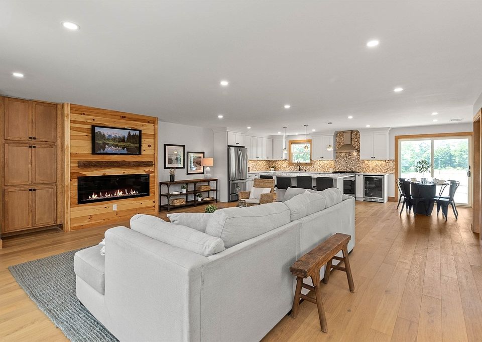 - Features: Wood / Coal / Pellet Stove, Dining Area, Balcony / Deck, Pantry, Countertops - Stone/Granite/Solid, Kitchen Island, Deck - Exterior, Exterior Access, Open Floorplan, Recessed Lighting, Slider, Wine Chiller, Gas Stove, Lighting - Pendant, Flooring - Engineered Hardwood
