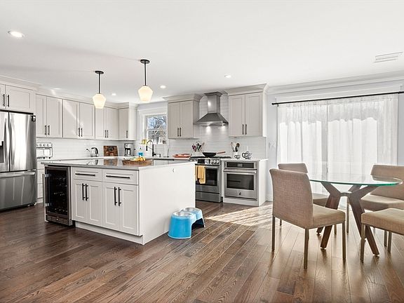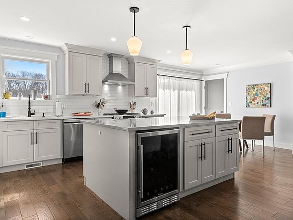 - Features: Flooring - Hardwood, Dining Area, Pantry, Countertops - Stone/Granite/Solid, Kitchen Island, Cabinets - Upgraded, Deck - Exterior, Exterior Access, Open Floorplan, Recessed Lighting, Slider, Stainless Steel Appliances, Wine Chiller, Gas Stove, Lighting - Pendant, Decorative Molding