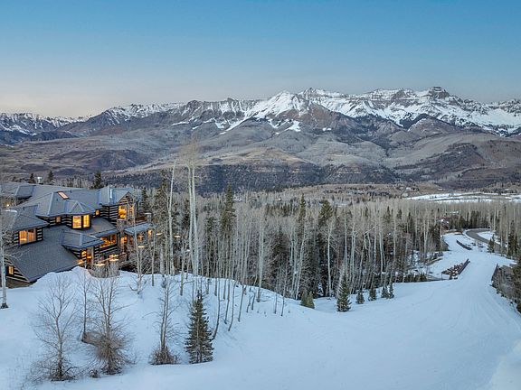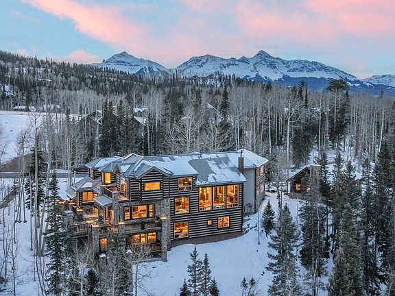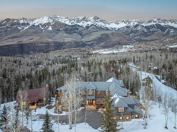 Beautifully remodeled, restyled and reimagined! 128 Hood Park is a 7,556 sq. ft. ski-in/ski-out retreat nestled on over 2 acres with one-of-a-kind mountain views. Boasting 5 en-suite bedrooms in the main house plus a 2-bedroom guest cottage, this residence seamlessly combines comfort, privacy, and convenience. The expansive Great Room features vaulted ceilings, exposed beams, and floor-to-ceiling windows framing breathtaking views of the Sneffels mountain range. The gourmet kitchen includes top-tier appliances, a breakfast bar, and ample storage, making it a culinary haven. Additional highlights include custom lighting, central A/C, radiant in-floor heating, sauna, hot tub, exercise room, theater with wet-bar & high-end furnishings throughout to enhance the sophisticated ambiance.