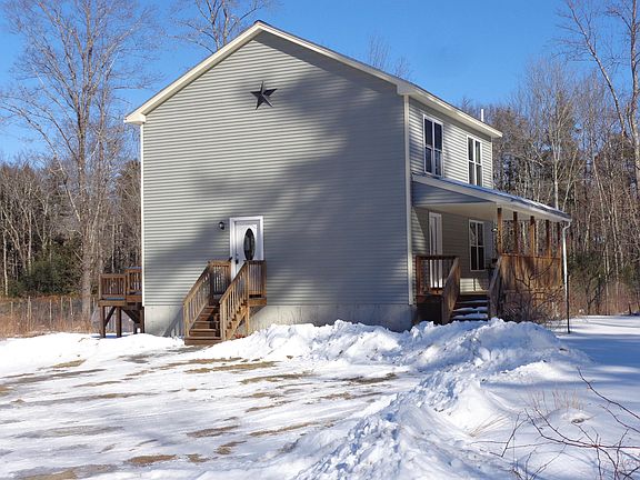 Cozy circa 2018 ''4-square'' 1586SF Colonial w/3 bedrooms & 1.5 bathrooms features a front farmer's porch, a rear raised deck, & a full 9' tall basement with its own mini-split for heat & AC. Main heat source is a propane-fired hot water baseboard system. House is prepped for a garage & master bedroom suite addition. The lot consists of 27.28 acres of wooded land with a woods road leading down to 1,020 feet of frontage on the Great Works River. 20 acres are in the Maine State Tree Growth Tax Law Program. Closer to the house on 2 cleared acres are 2 storage sheds, a greenhouse, 2 chicken coops, established gardens, as well as many varieties of fruit trees, nut trees, & berry patches. Oh, and there's an asparagus patch. Come & see this lovely private site to determine if it works for you and your future plans.