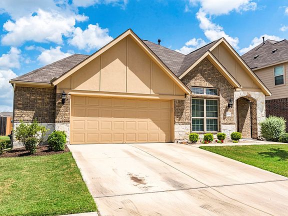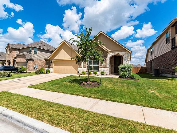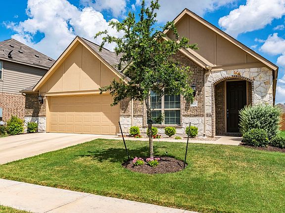 Small-town charm just 15 miles S of downtown! Better than new 1-story 3/2 ½, easy conversion to 4 BR. Gorgeous entry, high ceilings, arches, rounded corners. French doors in study, open MIL floor plan. Gourmet kitchen: granite counters, huge island/bar, stainless appliances, pantry, oak cabinets, crown molding. Covered patio, fenced backyard, gate access to greenbelt complete with trails and pond! Extended garage, space for workshop/storage, H20 softener, utility sink. Full sprinklers & gutters!