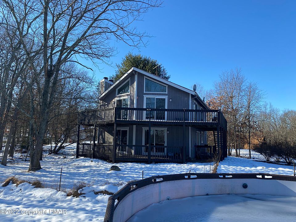 Very private, roomy, and comfortable Chalet close to many of the Pocono attractions. Low taxes and low HOA fees. 2 wood burning fireplaces, with a sauna and jetted tub in the primary suite. Outdoor firepit and above ground pool. Plenty of off street parking