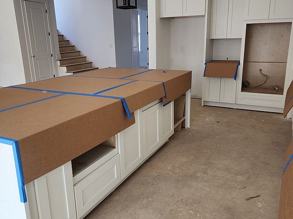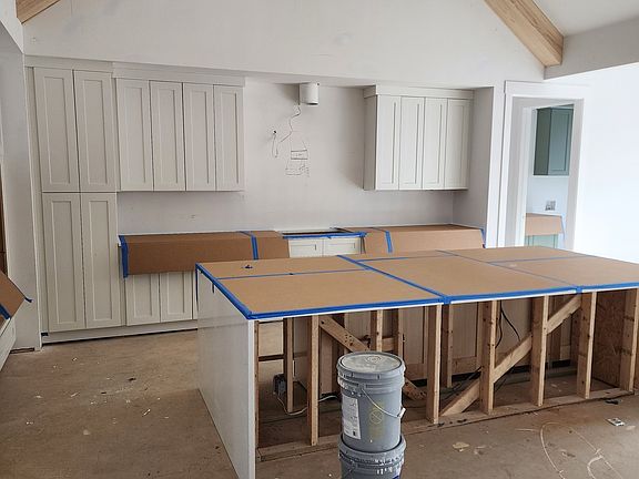 Island waterfallLarge work islandOpen concept master-on-the-main floorplanFull front porchFamily room with fireplacePlenty of painted cabinetryQuartz countertops