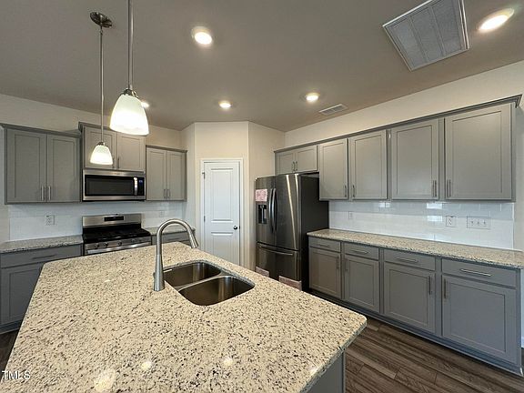 New Community - Exchange at 401 Excellent Raleigh location! Includes 1gb Spectrum high speed fiber Internet 4 bedrooms + 3 full bathrooms ~2400sf Perfect location with direct access to downtown Raleigh, Fuquay Varina, Garner, I40 and the new I540. Amenities include; clubhouse, fitness center, pool, dog park and more. Open floorplan includes a first-floor guest suite with full bath. Stylish kitchen with tile backsplash, kitchen island with granite counters. Large kitchen pantry. Oak stair treads lead upstairs where you'll find a loft, 2 secondary bedrooms and a luxurious owner's suite. Enjoy the views from the large screened porch and some grilling from the back patio. All appliances including washer/dryer and refrigerator are provided. Community pool and fitness center included! Move-in ready November