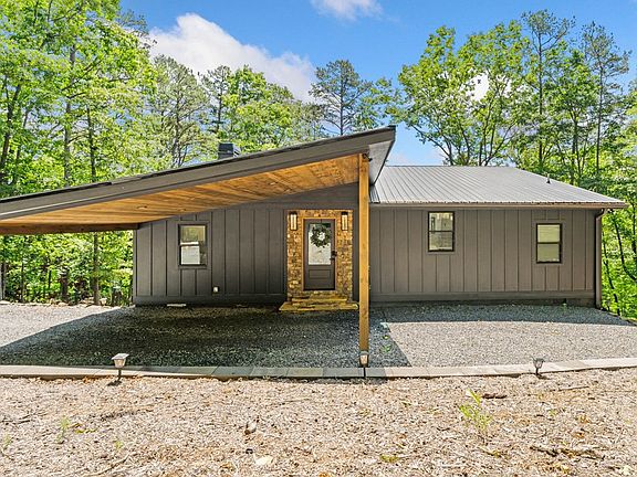 Immaculate Modern Mountain View Home – Built in 2022, Sold Furnished and Turnkey. This stylish mountain retreat blends modern design with rustic charm—featuring tongue-and-groove ceilings, a stone entryway, and exposed timber beams. Meticulously maintained, it's ready for immediate enjoyment or rental income. The open-concept layout includes a cozy gas fireplace in the great room and a wood-burning fireplace on the oversized entertainment porch—perfect for relaxing evenings in the hot tub under the stars. The gourmet kitchen offers high-end finishes and is thoughtfully designed to keep you connected while entertaining. High, beamed ceilings and abundant natural light create a bright, open feel throughout the efficient one-level floor plan. The split-bedroom layout includes two bedrooms and two bathrooms, each with custom accent walls and unique character. A spacious laundry room and extra storage enhance everyday convenience. Set on a 1.14-acre double lot with a large carport and ample parking, there's room to garden, expand, or simply enjoy the peace and quiet. The adjacent lot is also available (separate seller), offering even more potential. With no through traffic and only one home in the cul-de-sac, privacy is unmatched. Fiber internet supports easy streaming or remote work. Located in the sought-after Coosawattee River Resort in Ellijay, GA, enjoy access to tubing and kayaking on the river, three pools, five parks, mini golf, pickleball, tennis, basketball, and more—all for a reasonable HOA fee. Just minutes from local wineries, hiking trails, and downtown shopping, this property is ideal as a second home, full-time residence, or investment opportunity.