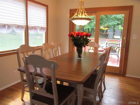 Lovely home in move in condition. New sliding glass door in dining room leads to oversized deck with awning, Hardwood floors. Bright family room on lower level and large screen wall mounted TV included. Large master bedroom on 3rd level of home. Prof. landscaped. Carpeting, ceiling fans, electrical fixtures are included.