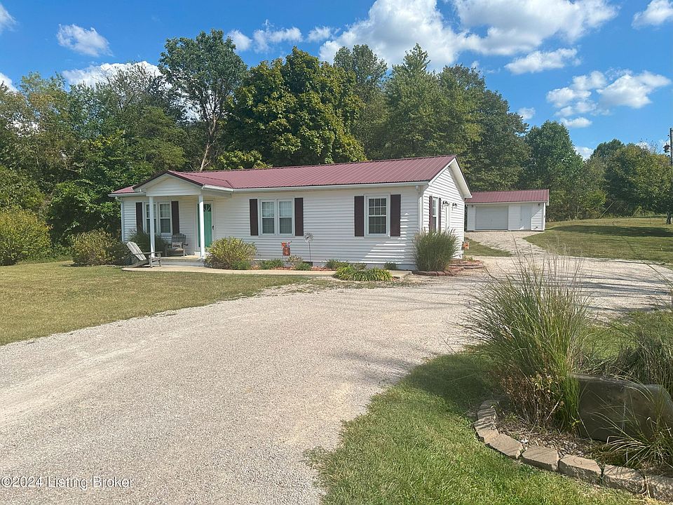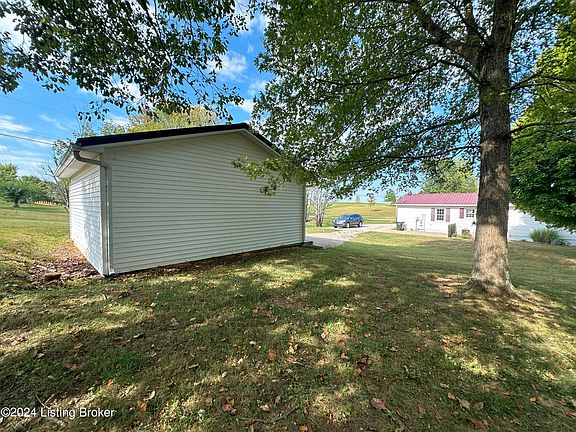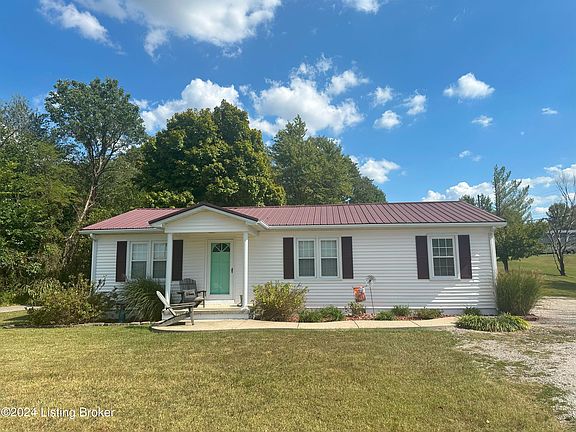 Welcome to this charming 3-bedroom, 1-bath home on .94 acres at 128 Lake Ridge Road, just a mile or so outside of Hardinsburg but within city limits. This home features fresh paint, new flooring, and recent updates including the water heater. The white vinyl siding with a striking red roof and new exterior door adds curb appeal, while the 400 sq ft garage and beautiful landscaping offer both functionality and beauty. Enjoy the serenity of country living with the convenience of nearby town amenities. Move-in ready and waiting for you to make it home!