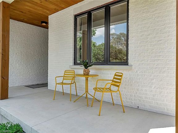 This newly built residence perfectly blends contemporary design, functional living, and luxurious finishes. With the potential for an in-law suite featuring a separate side entrance and heating, this home offers flexibility for multi-generational living or future expansion. The exterior impresses with a sleek combination of brick, hardboard, warm wood accents, and black trim details. The inviting covered front porch is the perfect spot to unwind and enjoy the neighbourhood. Step inside to a bright foyer with convenient access to the double garage, setting the tone for the sophisticated design throughout. Inside, you’ll find high-end fixtures, stylish finishes, and a modern colour palette flowing seamlessly from room to room. The chef-inspired kitchen is a true highlight—complete with smooth cabinetry, built-in appliances, quartz countertops, a large island, and plenty of storage. From here, walk out to the covered rear porch—ideal for outdoor dining or BBQ season. The open-concept main floor connects the kitchen, dining, and great room effortlessly. Floor-to-ceiling windows and custom built-ins create an inviting, light-filled space with views of the private backyard framed by mature trees. The primary suite offers a peaceful retreat with a spa-like 4-piece ensuite, featuring a freestanding tub and a glass-enclosed shower. Two additional bedrooms provide flexibility for guests, family, or a home office. Downstairs, the unfinished basement with a bathroom rough-in offers endless possibilities to create your dream rec room, gym, or secondary suite. Enjoy privacy, modern design, and everyday comfort in this thoughtfully crafted home—ready for you to move in and make it your own.