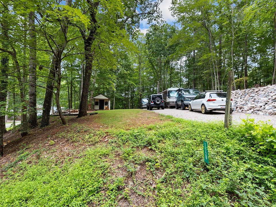 Oversized corner lot with seasonal water views from an incredible elevated view of neighborhood. Extensive landscaping with retaining walls, driveway, camper and deck pad, power, water, and shed. All trees limbed, climbing ivy abounds, and a new yard is installed over a new 2 bedroom septic system. This lot is one of the prettiest around, with plenty of room to move around, and just waiting for you to bring your camper and simply hook it up. Currently has a diesel motor coach on it, meaning it will accommodate the biggest possible campers, or park models available, with room for decking! The Coveted and Gated Lake Royale Resort Community is a Short Drive from the Triangle. The amenities include a professionally designed 18 hole golf course, a 3.25 Mile Long Lake, with Great Water Sports, Boating, and Fishing, Beaches, Pool, a Private Police Force, Tennis, Basketball, Volleyball, Miniature Golf, Pickleball, Etc. And activities for all ages.