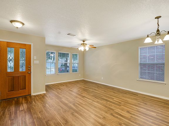 Move in ready and great location right across from Steele High School in a pretty neighborhood! Recently updated two story home w/large privacy fenced back yard. Oversized living/dining combo area greets you upon entering the home. Kitchen includes all appliances, overlooking the back patio and yard, opening into a large eat-in area with a family room. Laundry room on main level with washer and dryer. All bedrooms upstairs situated around the big room! Huge master bedroom with a large walk in closet.