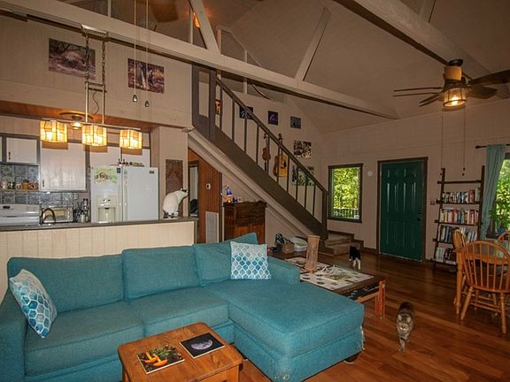 C'mon down to Turtletown and check out this adorable mini-farm on 1.7 acres of unrestricted land. This open-concept cabin boasts a downstairs bedroom and generous loft which could be used as an office or second bedroom. The property has a 550 gallon rainwater harvesting system, raised bed gardens, and a chicken coup, opening into a secure run. The property has been planted with a number of wildflowers, many of which should flower this summer for a dazzling display of color! Recent upgrades include a new, high-efficiency HVAC, new roofing screws, seamless gutters, and much much more!