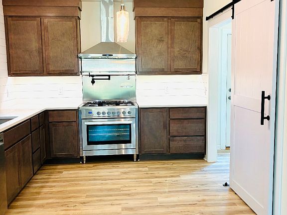 - Included: Stove: Stainless 5-burner gas stove with pot filler, Washer: Not included – hook up, installed for a stackable