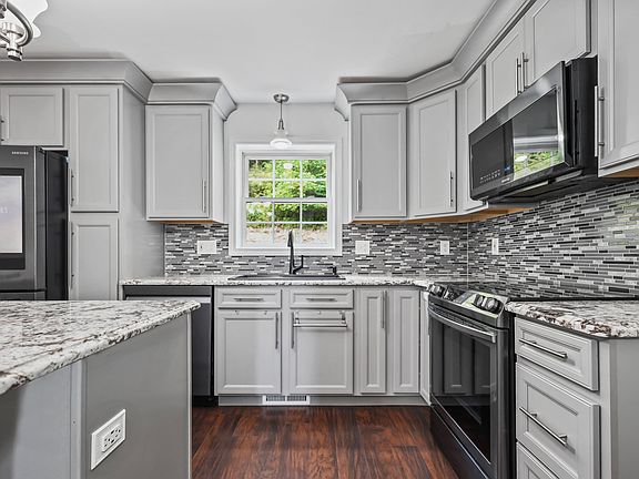 Tucked away, on a desirable cul-de-sac, and framed by a private wooded backdrop, 128 Melbourne Ct is an inviting 3 bedroom, 3 bathroom Colonial that blends modern updates with timeless comfort. The heart of the home is the fully updated kitchen, showcasing granite countertops, sleek cabinetry, a built in dry bar, stainless steel appliances, & a stylish tile backsplash. Sliders off the kitchen open to a large deck and stone patio with fire pit, the perfect setting for outdoor dining and entertaining. Inside the open, & airy living room features a cozy fireplace and vaulted ceilings, while the formal dining room, office, & a breezeway with pantry, laundry, & half bath add both elegance & convenience. A mix of hardwood & laminate flooring runs throughout the entire home creating a seamless flow. Upstairs you'll find generously sized bedrooms with ample closets. The primary suite offers a walk in closet and a beautifully updated en-suite bath with double vanity sinks, a spacious tub/shower combo, & a mosaic tile niche. Each bathroom throughout the home has been thoughtfully modernized with stylish finishes. The fully finished lower level provides versatile space- ideal for a family room, gym, or media retreat- ready to be tailored to your lifestyle. Contingent upon seller finding suitable housing.