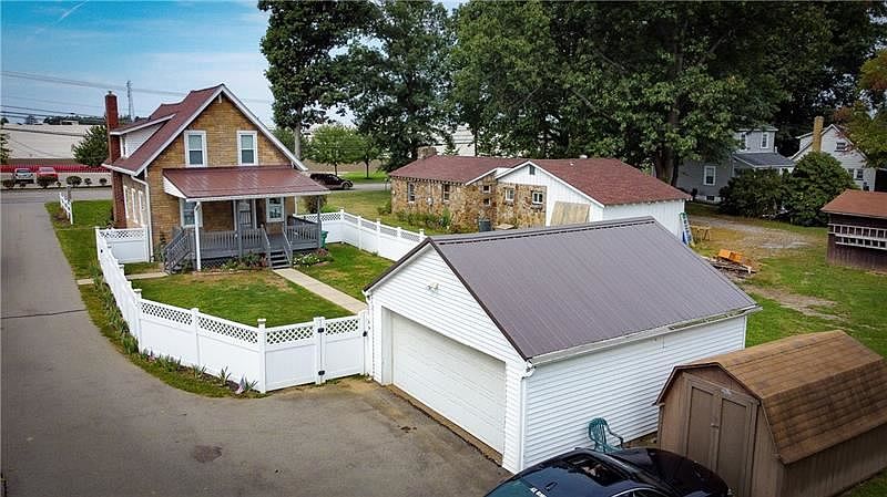 Welcome Home to this extremely charming stone two story. This 3 bedroom home features a nicely sized living room with recessed lighting, formal dining room, and kitchen with plenty of cabinet space. The 2nd floor boasts 3 Bedrooms and a full bath. Enjoy the fenced in back yard from the 18x12 Covered Back Porch. Additionally this home is equipped with a 2-car garage with metal roof, storage shed, & 1/2 acre of level yard. Updates include newer roof, newer furnace & a/c, & newer windows. Also... Hardwood Floors Underneath Carpet on 2nd Floor.