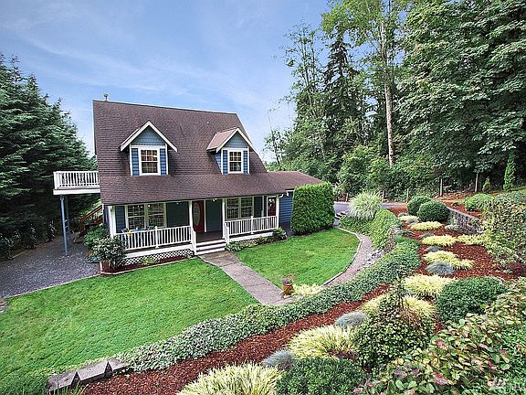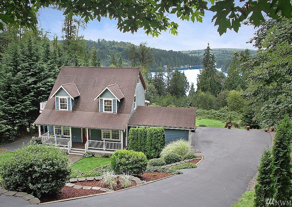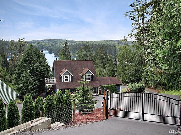 Lake Roesiger view home on 1.5 acres. Peaceful and private with a gated entry, fully blacktopped driveway with extra parking for your boat or RV, and a beautiful easy maintenance perennial yard. The huge covered deck takes full advantage of the view and makes entertaining easy, even in the Northwest. Inside has a nice flow, with a cozy woodstove in the living room, main level den, and kitchen with lots of counter space. Upstairs, the master suite has a private deck and more views of the lake! Seller will leave some nice quality yard equipment with a full price offer.