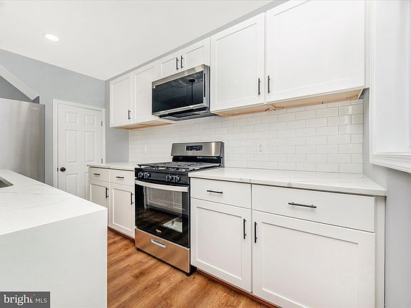 Welcome to this beautifully renovated 3-bedroom, 2.5-bath home with an added bonus den, perfectly crafted for comfort and style! Step inside to an inviting open floor plan that’s ideal for entertaining, featuring a stunning kitchen with a waterfall quartz center island and sleek stainless steel appliances. The main level boasts luxury vinyl plank flooring throughout and a convenient powder room for guests, while the upper level is highlighted by rich hardwood floors. The lower level offers a spacious den, a full bath, and a cozy rec room—perfect for additional living or office space. Outside, enjoy the fully fenced backyard, perfect for summer BBQs and gatherings. Situated in a prime location near I-95, I-695, Route 40, parks, and shopping, this home combines modern convenience with unmatched charm. Don’t miss the opportunity to make it yours—schedule your tour today!