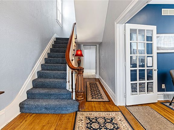 This fully rented great investment opportunity has a striking facade that features intricate woodwork and vibrant, period-appropriate colors, with a deep blue exterior contrasted by creamy white and burgundy trim. Towering windows punctuate the front, allowing ample natural light to filter into the interior spaces. The gabled roof and covered front porch invites visitors with its classic wooden railings. Inside, high ceilings and neutral colors create a professional atmosphere. The entry has an exquisite staircase, arched window over the door and pristine flooring. The vintage moldings and French Doors create a sophisticated tone. Each office retains unique architectural details, such as ornate fireplaces and woodwork, blending modern functionality with historical elegance. The building is equipped with updated amenities, ensuring a comfortable working environment while preserving its timeless charm. There are 4 private offices, a kitchen area and a private 2nd floor apartment.