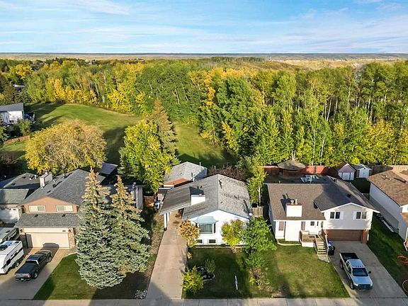 Welcome to 128 Ermine Crescent, Where Absolute Serenity Meets everyday Convenience! Nestled on a spacious 6,050 sq ft greenbelt lot backing directly onto the breathtaking Birchwood Trails, this home offers the peaceful lifestyle you've been dreaming of. Located in the highly sought-after neighborhood of Thickwood, this property is ideal for families, nature lovers, and anyone looking for a blend of privacy and accessibility. This Charming Bungalow features 4 spacious bedrooms and 2 fully upgraded bathrooms, offering plenty of room for the growing family. The main floor boasts beautiful wood flooring throughout, a bright and open retro-style kitchen with a huge island, and a cozy wood-burning fireplace perfect for chilly evenings. The primary bedroom offers direct access to the back deck and panoramic greenbelt views. Downstairs, the fully developed basement includes a massive rec room, a full second kitchen, a wood stove, a renovated bathroom, a den, and a separate walkout entrance leading to a concrete patio—ideal for extended family, guests, or potential rental income. This home also offers a heated double detached garage, RV parking, and a huge carport, providing ample space for all your vehicles and toys. Outside, enjoy your private backyard oasis complete with a fire pit, garden area, newer fencing, and unbeatable views. The 84 ft driveway can easily accommodate up to 6 vehicles, making it perfect for families with multiple cars or hosting guests. Plus, you're just minutes from top-rated schools, bus stops, the dog park, and all the amenities at Thickwood. Don’t miss this rare opportunity to own a true greenbelt gem in one of Fort McMurray’s most desirable areas!