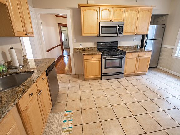 Renovated 3 bedroom/1 bathroom apartment on 1st floor of 3 family house in Watertown. Updated eat-in kitchen with granite countertops and stainless steel appliances including gas stove, fridge, dishwasher, microwave as well as large pantry which can be used as an office. Open space layout large living room and dinning room. 3 bedrooms with ceiling fans. Updated bathroom with tub. Shared free laundry in the basement. 1 garage and 1 off-street parking. Small shared yard with bbq area. On a quiet street 2 blocks from #71 bus line to Harvard Square. 15 minutes walk to Arsenal Mall. Preferably no pets, but 1 cat could be considered. No smoking. Available July 20th. All applicants must have good credit.