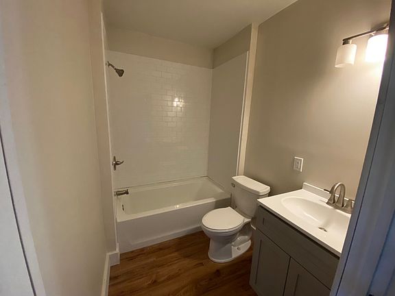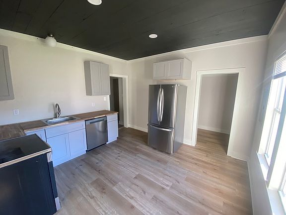 This home features stainless steel smart appliancesincluding a refrigerator with ice maker and an oven with built-in air fryerplus modern fixtures throughout. The bathroom includes a subway tiled tub/shower combo, and both bedrooms are large and comfortable. Original hardwood & Luxury Vinyl Plank flooring throughout. A large front porch offers a space to unwind in the evenings. This duplex features soundproofing in between the two units, providing extra peace and privacy.