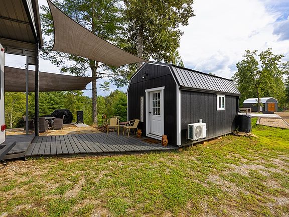 This 0.72-acre property in an RV- and tiny-home-friendly community is loaded with upgrades and ready to enjoy! Included is a furnished 40' 2018 Heartland Mallard RV, plus a 12x16 shed that has been beautifully converted into a furnished sleeping cabin complete with a kitchenette, full bathroom with soaking tub, bunk beds, and a cozy sitting area. Outdoor living is a highlight with mountain views from the flagstone patio and outdoor kitchen, a spacious deck connecting the RV and cabin with seating space, and a lower-level fire pit area perfect for gatherings. Additional improvements include an RV carport with 14' opening, a storage shed, and built-in RV storage for added convenience. A 2-bedroom septic system is already installed, with underground utilities and shared community water in place. With these upgrades complete, this unique property is truly move-in ready, offering you an easy blend of comfort, functionality, and mountain living!