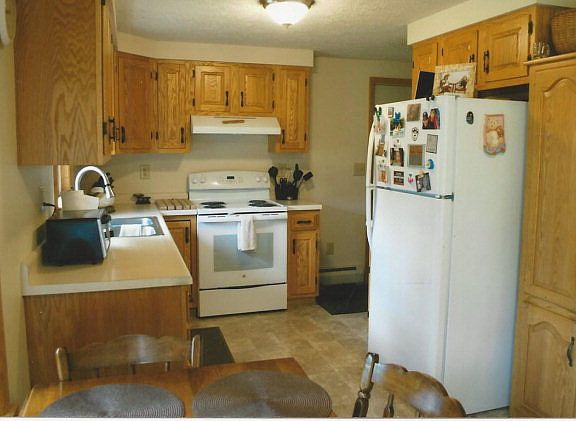 Home has new metal roof and seamless rain gutters installed in 2014. Driveway was recapped in summer of 2014. Interior is in excellent condition with wall to wall carpet in living and bedrooms. Home features red oak trim with kitchen cabinets recently refinished. Hot water oil fired baseboard heating systems has a cold headed heater for energy savings. There is a propane fired monitor heater in the basement, which combined with the poured concrete walls enhances heat efficentcy. Entire interior was refinished in 2014. New on demand propane hot water heater in stalled in 2014.