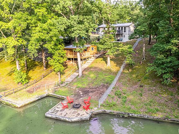 Run or swim, don't mosey! The cutest lake cottage in the South is up for grabs and you're gonna want to snatch it up. Completely remodeled and current short term rental, the seller just doesn't have time to devote to the short term rental demand, so now's your chance to owner occupy, invest, or reap the benefits of using it when it's not rented. Main house is super cozy with lots of natural light as well 3 beds/2 full baths. Granite counters and newer stainless steel appliances. Primary bed, bath, kitchen, dining and living room with fireplace on main level and upper deck overlooking water. Downstairs you will find 2 bunk rooms a full bath with access to patio and hot tub as well the laundry and extra storage. A 200+/- SF heated and cooled studio with kitchenette has an outdoor shower and toilet. Near the water's edge is a great fire pit spot and boat tie up. Furnishings negotiable. Buy it now!
