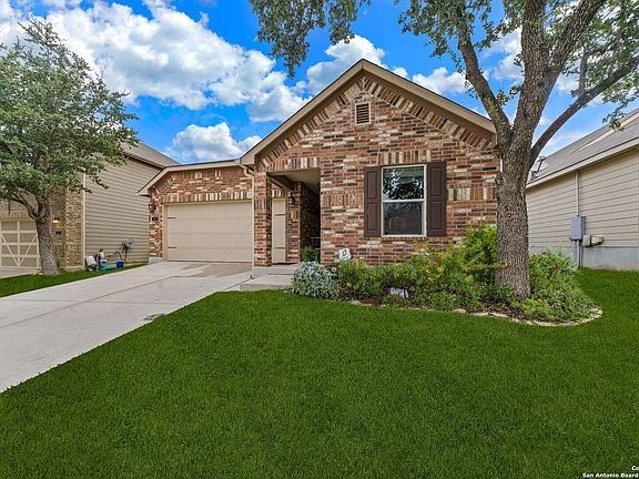 Welcome to this charming 3-bedroom, 2-bathroom single-story home located in the desirable Trails at Herff Ranch neighborhood in Boerne. Step inside to an open living and dining area that offers a spacious and inviting atmosphere. The kitchen features abundant counter space and cabinetry - with brand new quartz countertops added in Sept 2024 - a breakfast bar, and a walk-in pantry, making it perfect for both everyday meals and entertaining. The primary bedroom is a serene retreat with an ensuite bathroom that includes a large tile shower and a double vanity. Nicely sized secondary bedrooms and a well-appointed bathroom provide comfort and convenience for family or guests. Freshly painted with a neutral color palette and low-maintenance tile flooring throughout, this home offers easy personalization and effortless upkeep. The yard has been beautifully maintained, with an in-ground sprinkler system and lush landscaping, enhancing the curb appeal and adding to the home's overall charm. The private, fenced backyard is an oasis with an open patio and shade trees, ideal for relaxing or outdoor gatherings. Additionally, Conveniently located just a short drive from local shopping and dining in downtown Boerne, and within walking distance to the neighborhood pool, park, and sport court, this home combines comfort with community convenience.