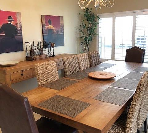 Furnished vacation rental only. This is an off season yearly rate only. June through August is more expensive Great family home just 2.7 miles from Moonlight Beach in Encinitas within walking distance to great restaurants and shopping. Brand new kitchen! Lives bigger than the 2100sf it is. Formal living and dining, brand new gourmet kitchen is open to family room. Covered outdoor cabana with fan, grill, outdoor living room and fire table! This is a great home for families and pets, we allow dogs and has a fenced yard. Nicely updated, two fireplaces, great outdoor seating area, open floorpan, vaulted ceilings and great master area. Quiet cut-de-sac. Single family home. No stairs. Includes one king, two queens a twin and a full bed. Utilities are not included so there will be a bill for actual usage. Pet fee is separate. This is a yearly price and longer term multiple years are possible. Call for details. Furnished vacation rental, sleeps eight in beds. Single level home in Encinitas within walking distance to restaurants and shopping. Top school district. Available for long term lease beyond one year or monthly rates are available. Summer rates are more expensive. Call for details. New kitchen, cut-de-sac location 3 miles from Moonlight Beach. Two fireplaces in formal living room and family room. Open floorplan with high ceilings. Fenced in back yard, pets allowed. Perfect family home.