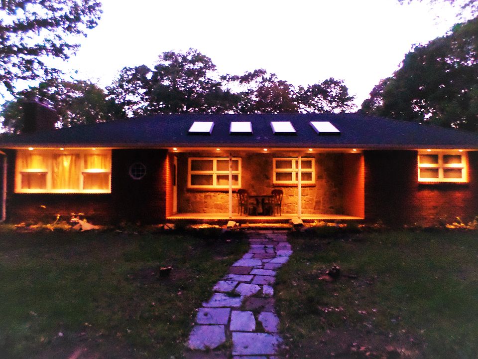 Single Family all Brick and 5" thick Stone , single floor ranch on over a half acre with three deeded driveways two septic systems , 9 sky lights , living room , dinning room , kitchen , four bedrooms, two porches , full basement , and one fireplace .