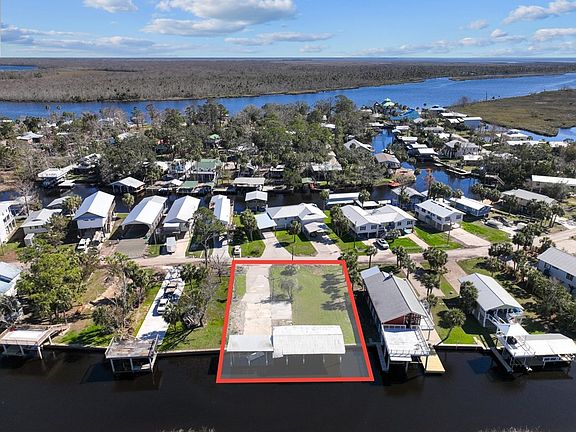 Waterfront Paradise in Suwannee, Florida! Discover two prime lots on a deep-water canal with direct access to the Gulf of Mexico! This rare find is ready for all your coastal adventures, featuring a sturdy seawall, a covered boat lift with four lifts, and a solid concrete slab. Perfect for RV lovers, the property offers two RV hookups (110 amp each), along with city water and sewer already in place. Enjoy a lush, irrigated lawn and fruit from your own banana and fig trees. Whether you're looking to build, vacation, or invest, this property has endless potential for waterfront living!