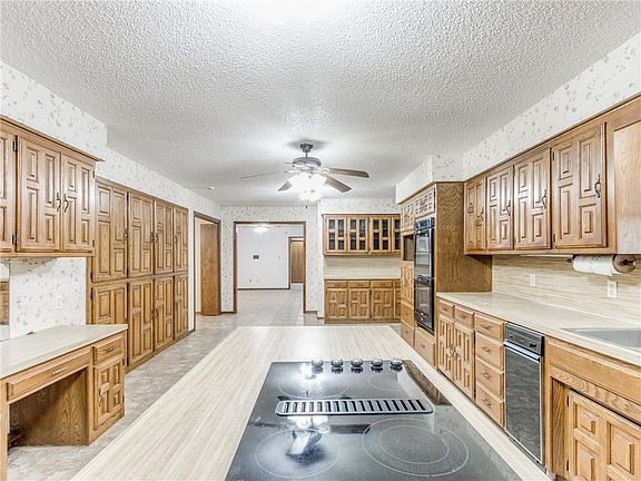 If space is what you desire, YOU HAVE FOUND IT! This beautiful home is tucked back in one of Chickasha's most sought after neighborhoods. The home features a formal living room, excellent size family room with wet bar, and an additional sun room off the back patio, making this a home you will have no trouble finding a place to relax and enjoy! The kitchen is designed to host large gatherings and offers storage galore and beautiful custom hardwood cabinets! The kitchen features space for seating, plus a formal dining room located conveniently off the kitchen and formal living area. The home has been freshened up with new paint, carpet, and appliances. This home is ready for you to move right in! The backyard oasis features an oversized covered patio offering the perfect place to entertain and relax outdoors. The home is sold with two outbuildings allowing for plenty of storage, and a storm shelter for your peace of mind. Schedule your showing before this spacious home is gone!