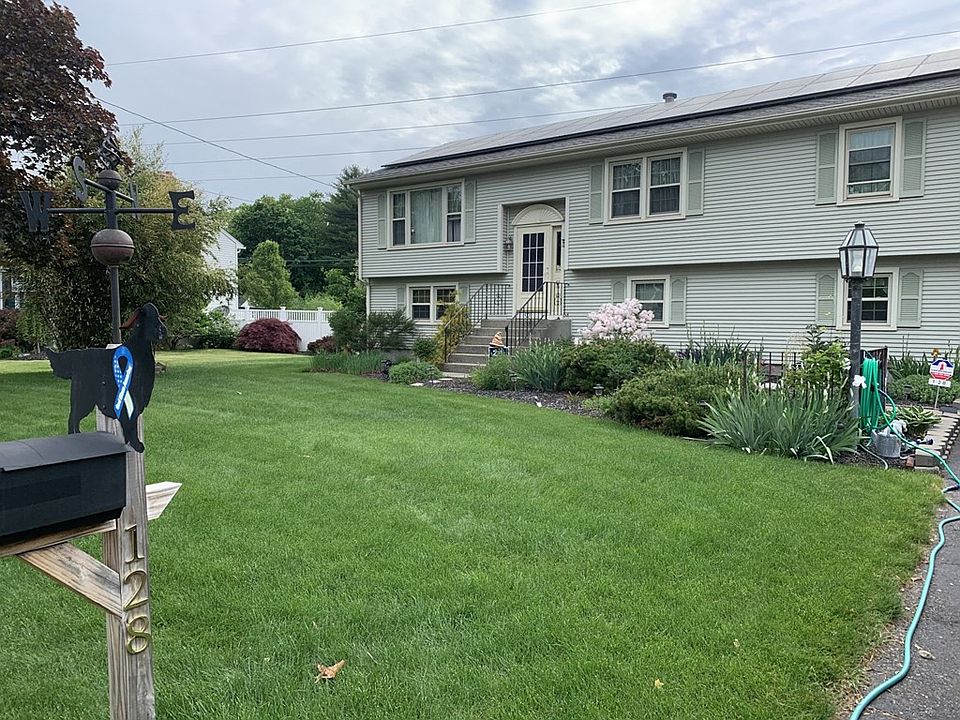 Raised ranch. Upper level, living room, large kitchen with island, 3 bedrooms,2 baths. Enclosed heated sunroom with rear deck. Lower level finished living room, bar, 2 rooms to use as you wish, unfinished storage area with washer and dryer. 2 car heated garage, 2 carports, 16x20 shed with electric. 30’ above ground pool with 8x12 deck. Ductless A/C, solar panels, heat is forced hot water, new septic completed 2022.