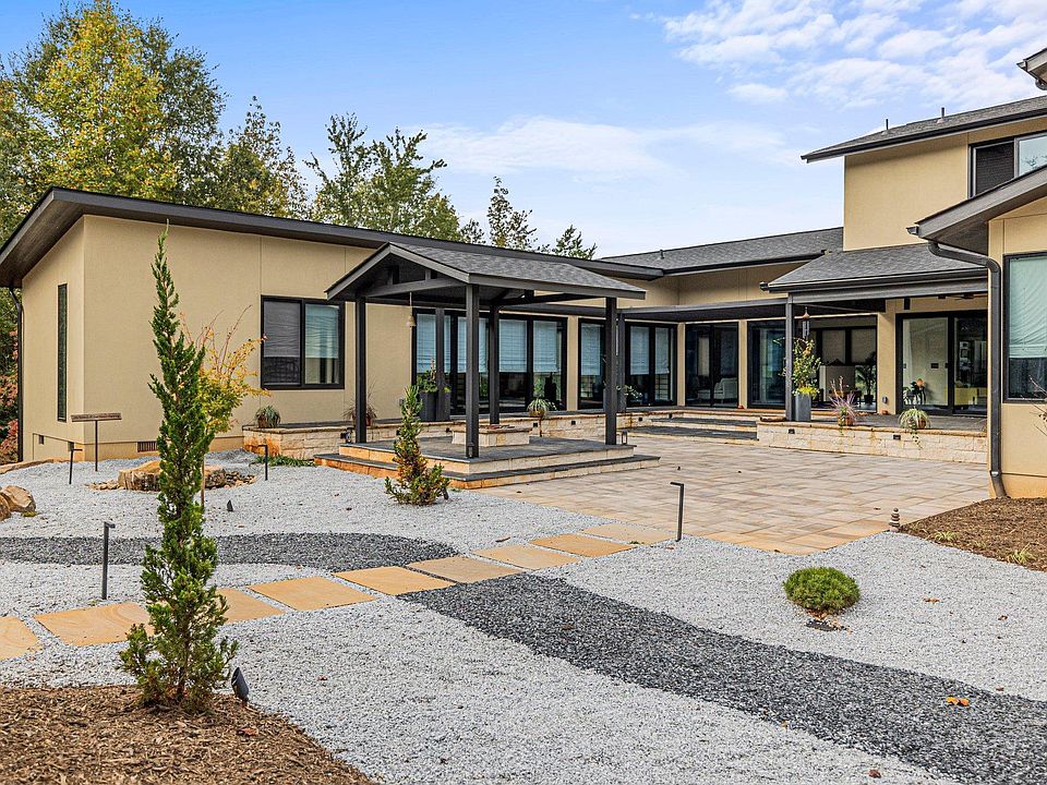 Welcome to 128 Sanctuary Lane, an extraordinary custom-designed residence nestled within the prestigious Sanctuary of Greenville in Taylors, South Carolina. This architecturally crafted, one-of-a-kind modern home, completed in 2023, blends refined luxury with natural serenity across 4,088 square feet of thoughtfully designed living space. The main residence features four bedrooms and four and a half bathrooms, complemented by a beautifully finished one-bedroom, one-bath detached guest house—perfect for hosting guests, creating a private retreat, or offering as an Airbnb-ready income opportunity. Positioned on a meticulously landscaped 1.08-acre lot, the home is surrounded by mature trees and tranquil gardens. A peaceful walking path winds through the wooded portion of the property, leading to a natural stream tucked away for quiet reflection. The meditative walking path and labyrinth create a serene environment ideal for yoga, mindfulness, or a wellness experience in nature. At the heart of the residence lies a stunning central courtyard with an outdoor fireplace, creating a seamless connection between indoor and outdoor living. Multiple gathering spaces, both inside and out, provide the perfect setting for intimate get-togethers or larger events of up to 50 guests. The collaborative kitchen and outdoor dining area open beautifully through the patio doors, offering a natural flow for entertaining and culinary experiences. The open-concept floor plan is bathed in natural light from expansive picture windows that capture the home’s east-west orientation and full southern exposure. The gourmet kitchen is a showpiece, featuring a massive central island, granite countertops, walk-in pantry, and top-of-the-line stainless steel appliances by Bosch and Electrolux. Elegant fixtures throughout the home include premium selections from Toto, Grohe, and Legrand, ensuring every detail feels elevated and intentional. The patio off the kitchen can easily be screened to create an inviting extension of the kitchen’s sitting area—ideal for relaxed mornings or evening gatherings. The primary suite, located on the main level, serves as a luxurious sanctuary with custom closets and a spa-inspired bath, offering expansive views of the courtyard. A standout feature of the home is the truly unique Japanese tea room—a custom-designed, intimate space that evokes peace, tradition, and elegance. This beautiful tea room can also be converted to extend the main living area or reimagined for multiple uses such as an artist studio, yoga or meditation room, additional family room, study, or creative workspace. Just steps away, a Japanese-style healing and meditation suite awaits, complete with a steam room, sauna, shower, and private bath—designed to restore and rejuvenate both body and mind. The detached guest house mirrors the craftsmanship and finish of the main home and includes its own private bedroom, bathroom, and entrance. It is fully furnished and thoughtfully designed, ready for guests or use as a short-term rental or AirBnb. Every inch of this residence has been curated with attention to detail—from custom closets and built-in shelving to wall art niches and abundant storage solutions. Flooring throughout the home includes warm bamboo wood, wool berber carpet, and natural slate, adding texture and timeless character. Outside, the grounds are a sanctuary in their own right. Professionally landscaped with a Japanese rock garden, meditative labyrinth, and soothing water features in both the front and back yards, the setting feels grounded and inspirational. Solar and electric landscape lighting enhance the ambiance, while a designer garage door and underground irrigation system add function to the beauty. Whether you envision hosting family retreats or creative workshops, this residence offers flexibility to accommodate up to ten guests with fully equipped spa facilities, This fully furnished home, includes all designer-selected furniture and artwork.