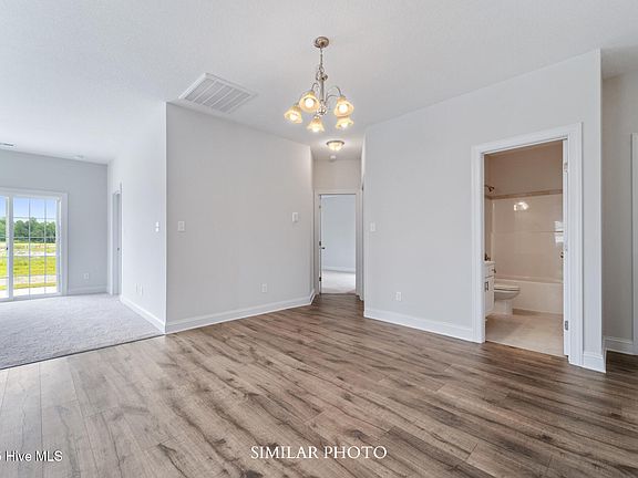 When convenience is everything, the location to live is The Vineyards! A Sydes exclusive new construction community located inside the city limits of Jacksonville, left of River of Life Church, across from Lowe's Foods. Approx. 10 miles to Camp Lejeune, minutes from all area shopping and dining. Prime location. Natural gas. Laminate flooring standard in the living room. Welcome to The Paige floor plan offering 1,536 heated square feet, thoughtfully laid out across one level with 4 bedrooms and 2 bathrooms. The open-concept main living area flows seamlessly into the dining space and kitchen, which features a functional layout ideal for daily living. The primary suite is tucked away for privacy, complete with an en-suite bathroom and spacious closet. Three additional bedrooms are positioned on the opposite side of the home, conveniently located near a full guest bathroom. A dedicated laundry area and easily accessible entry points enhance the overall practicality of this well-balanced design. NOTE: Floor plan renderings are similar and solely representational. Measurements, elevations, and specs may vary in final construction. Limited selections for buyer to choose. Call L/A to verify.