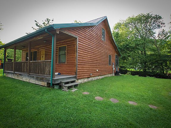 Back on the market because buyer wasn't able to obtain financing. Lovely log cabin with 2 bedrooms, 2 baths and a bonus area that makes great office/playroom/sitting area. Breathtaking creek right off the back deck that you can hear and see from inside the house. Crack your bedroom window at night and let the sound of running water put you to sleep. Detached storage shed for extra storage. Buyer to verify all info.