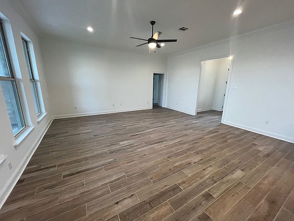 The KLEIN III A in The Settlement at Live Oak community offers a 4 bedroom, 3 full bathroom open design. Features: double vanity, garden tub, separate shower, and walk-in closet in the primary suite, primary closet goes through to the laundry room for added convenience, tray ceiling in the primary bedroom, double vanity in the second bathroom, a kitchen island overlooking the living room, spacious walk-in pantry, mud room with boot bench, covered front porch, covered rear porch, side-entry garage, ceiling fans in the living room and primary bedroom are standard, smart connect wi-fi thermostat, smoke and carbon monoxide detectors, post tension slab, landscaping, architectural 30-year shingles, flood lights, and more! Energy Efficient Features: a tankless gas water heater, a kitchen appliance package with a gas range, low E tilt-in windows, and more!