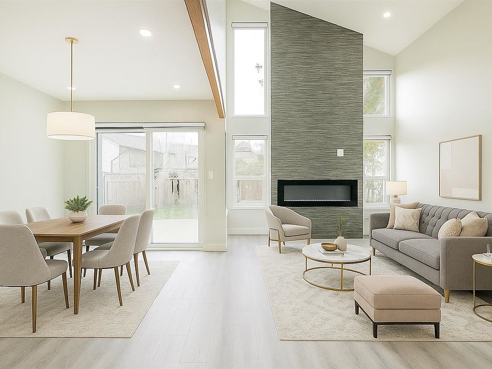 Open-concept livingNewer floorsGas fireplaceHigh ceilingsPlenty of natural lightFully fenced backyardMature trees