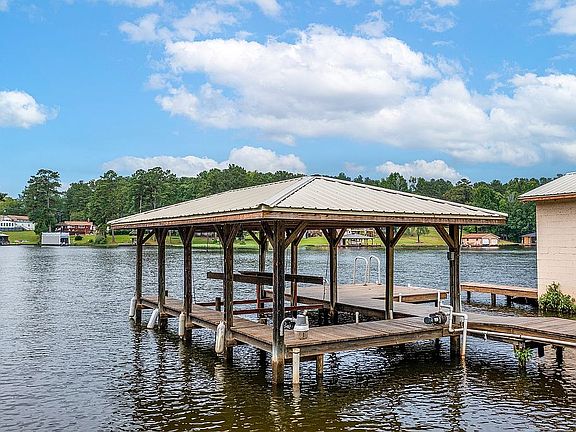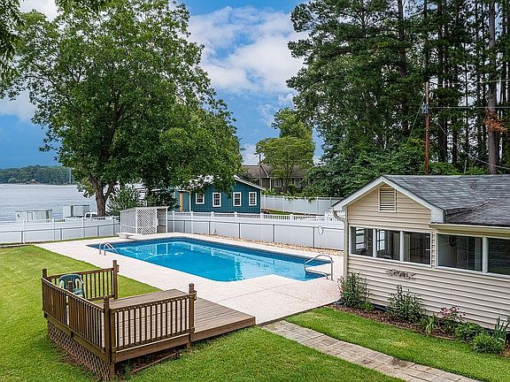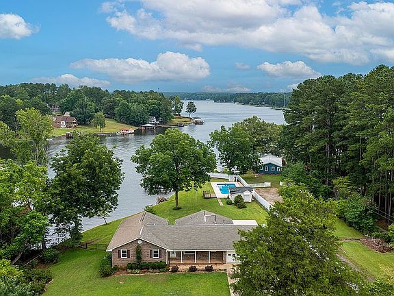 Located on the on the Northern side of Lake Sinclair Georgia and two miles off Highway 441 North is lakefront property consisting of a Ranch brick home that is approximately 2300 square feet with three bedrooms, two upgraded full baths and a double garage. Partial basement consisting of approximately 700 square feet is unfinished. Basement opens onto a patio adjacent to the lake. The 1.3 acre property has an attached covered deck and a 20x40 saltwater vinyl swimming pool with a new liner. Adjacent to the pool is it an approximate 370 square foot pool house with one full bath, kitchenette sitting/sleeping area and room for pool supplies. There is a single covered boat dock along with a swim dock and an enclosed block building with Lake access. Both buildings have metal roofs.
