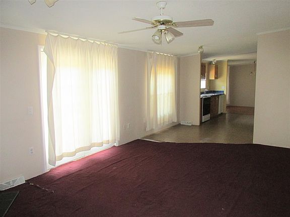 Road divides this +-5 ac private property w/stream & dry pond. This spacious dbl.wide has a laundry rm, frm with gas log fp. Kit w/pantry, dining area, spacious lr and 3 br. The large master br has a walk in closet, garden tub, sep shower & dbl vanity. There is also a room off of the master that could be used as a nursery, office, craft room, or do I dare say a closet! Previous owners have said that the pond could be filled via a pipe that runs from the creek to the pond area. Sellers have not done that so they cannot attest to that, but you can try.