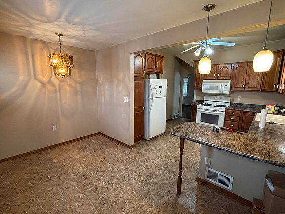Discover the allure of this charming home that boasts a fresh and polished exterior with professionally installed siding, soffits, fascia, and gutters. Revel in the comfort provided by a new furnace, air conditioning unit, and water heater, all added in 2017. The roof, both on the house and garage, was also replaced in the same year. The main level floors were skillfully refinished in 2014, offering a timeless touch to the interior. The kitchen is adorned with beautiful cabinets, enhanced by contemporary light fixtures, creating a modern ambiance that flows seamlessly into the dining area. While the house requires some attention, its fixer-upper potential is undeniable, making it an ideal canvas for your personal touch or the perfect investment opportunity! Don't miss the chance to transform this property into the home of your dreams.