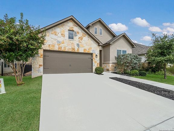 This stunning two-story home is nestled within the highly desirable Esperanza Boerne neighborhood, offering 4 spacious bedrooms, 3 baths, and a dedicated office that can easily serve as a fifth bedroom. The thoughtfully designed layout features the primary suite, a second bedroom, and an office all conveniently located on the first level, with the kitchen, dining, and living areas providing seamless flow for everyday living. Upstairs, you'll find additional bedrooms and a spacious family room, perfect for relaxation or entertaining. Backing up to serene green space, this home provides both privacy and beautiful views. Additional highlights include plumbing for a water softener and access to an array of premium neighborhood amenities such as a clubhouse, controlled access gate, jogging trails, park and playground, sports court, and resort-style pool. Located in a gated community with a park within walking distance, this home perfectly combines comfort, style, and convenience.