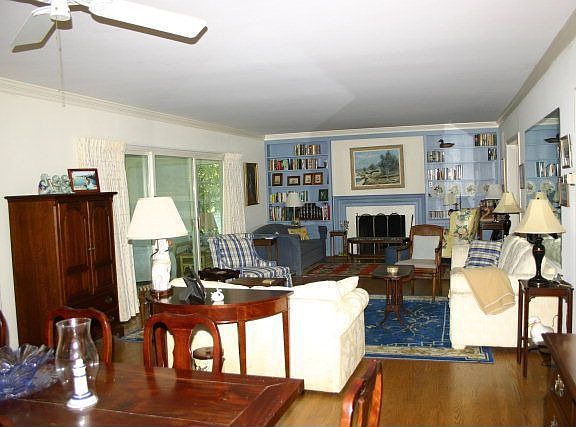 Great unit on Carter Creek with boat slip. Huge open living/dining room with fireplace that opens to sunroom overlooking the water. Half bath off foyer. Kitchen with utility/craft room or office. Two master suites on second level. One bedroom has a fireplace.