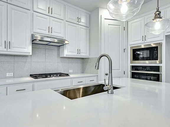 Winterlake brick exteriorMiami white quartz countersPendant lights over island