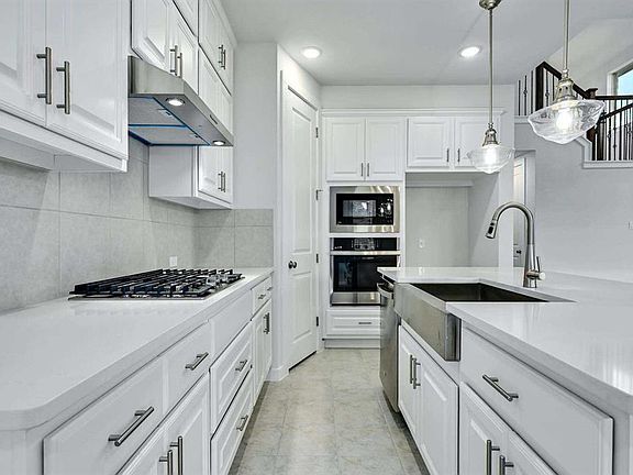 ** Showing will start on Nov 25th TUESDAY *** APPOINTMENT ONLY** Beautiful home with four sides Winterlake brick exterior with 19' ceiling at entry and dining room. Kitchen upgrades include-Miami White quartz counters, Kohler apron single bowl stainless steel sink, white raised panel cabinets with satin nickel tube pulls, additional 15” upper cabinets, pendant lights over island, built in 5 burner gas cooktop and appliances. Both primary bath upstairs and secondary bath downstairs have walk-in showers in lieu of tubs. Iron stair railing on the stairway extends to the loft upstairs with a view of the dining room below. Images does not do justice to this specious home.