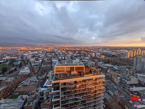 Incredibly spacious, cozy, loft-style unit with stunning panoramic views of the North Shore Mountains, Port of Vancouver, Baker Mountain, and Science World. Uniquely designed by a local artist, this unit is fully equipped with modern appliances (Dyson, AEG, Panasonic, LG), a stacked in-suite washer/dryer, and a huge kitchen island. Amazing floor plan with 10' exposed concrete ceilings and floor-to-ceiling windows. The suite comes with a Sony 65" 4K TV, a Hi-Fi sound system (Sonus Faber, TransAudio), and 1GB high-speed internet. There is an office space with a huge table and an office chair. Large bedroom complete with a queen-size bed. The bathroom has a separate shower and a bathtub.