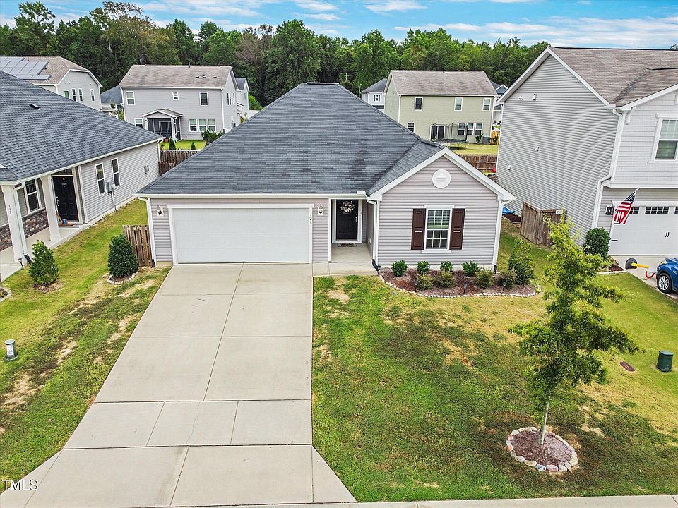 Location, Location, Location! Discover this beautiful ranch home in a prime Fuquay-Varina location! Nestled in the highly sought-after PARTIN PLACE community, this gorgeous home offers a perfect blend of sophistication and comfort. Built in 2020, this one story home offers a bright and spacious open-concept kitchen and family room, perfect for gatherings. Entertaining can continue outside with privacy FENCED back yard with patio area. The kitchen features granite countertops, Bosch dishwasher and refrigerator conveys. Primary suite is a true retreat, featuring a generous en-suite bath with dual sinks and large shower, as well as a walk-in closet for ample storage. Separate laundry room and washer/dryer convey. Freshly PAINTED throughout, this home is MOVE-IN READY, and with a low quarterly HOA fee that includes access to the COMMUNITY POOL, you'll have everything you need for a relaxed, enjoyable lifestyle. Additionally, the neighborhood boasts with beautifully landscaped grounds and sidewalks for nice walks. Conveniently located near shopping centers, diverse restaurants, and the upcoming Target, ensuring all your essentials are within easy reach. This home is in a PRIME location just minutes from shopping in both Fuquay-Varina and Holly Springs. Close to US HWY 401/55 for easy access to Raleigh, Apex, Cary, Garner, Angier, or Clayton commutes (20-30minutes!). This home truly offers convenience and comfort in a desirable location! WELCOME HOME!