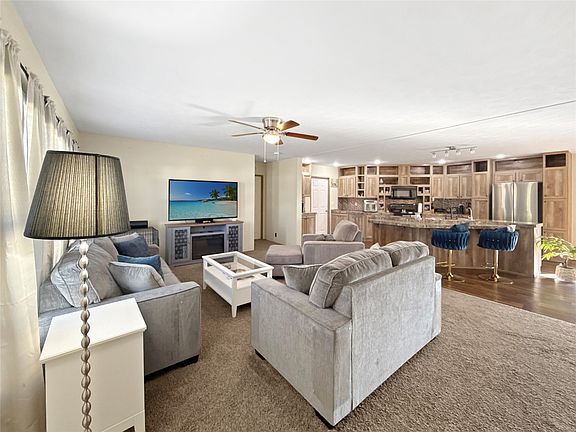 Open floor planExpansive front and backyardEndless possibilities for playSpacious back deckCarpet and vinyl flooringWooden front porchKitchen island